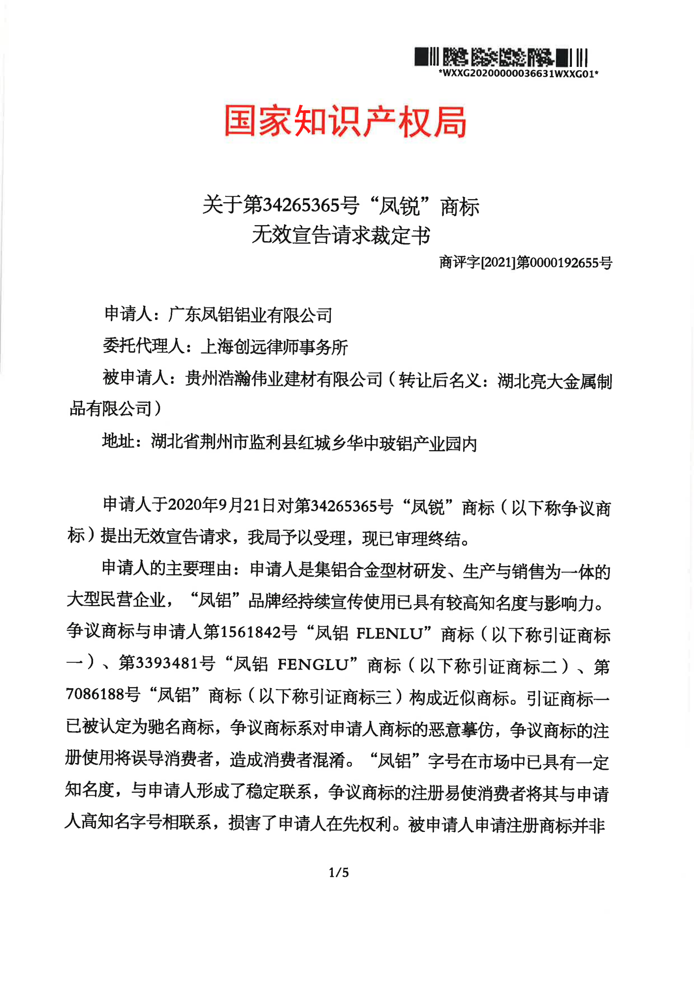 河源辉知队 | 国家知识产权局:“凤锐”商标无效