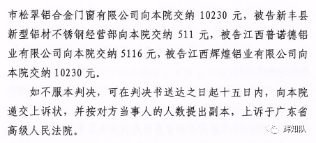 河源凤铝系列维权案:诉辉煌公司等四被告,法院判赔250余万